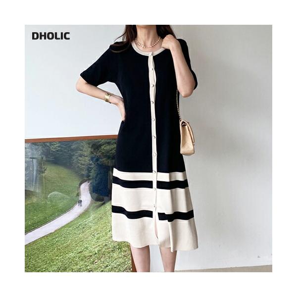 シンプルモダン ストライプ ボタンフレアワンピース 3色 Monica Room ワンピース Buyma